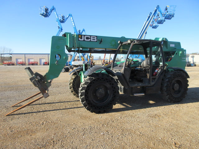 The JCB 509-42 is a reliable and high-performance telehandler designed for heavy-duty lifting and material handling. With a maximum lift capacity of 9,000 lbs and a reach of up to 42 ft, it delivers exceptional strength and versatility. Its rugged design, four-wheel drive, and advanced hydraulics ensure smooth operation on rough terrain, making it ideal for construction, agriculture, and industrial applications.