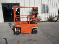 Vertical steel mast lift with hydraulic drive and a scissor lift system for traction, power, and control. Direct electric drive on the front wheels ensures excellent maneuverability and extended work cycles. With a working height of 18.5 ft. and a platform capacity of 230 kg.